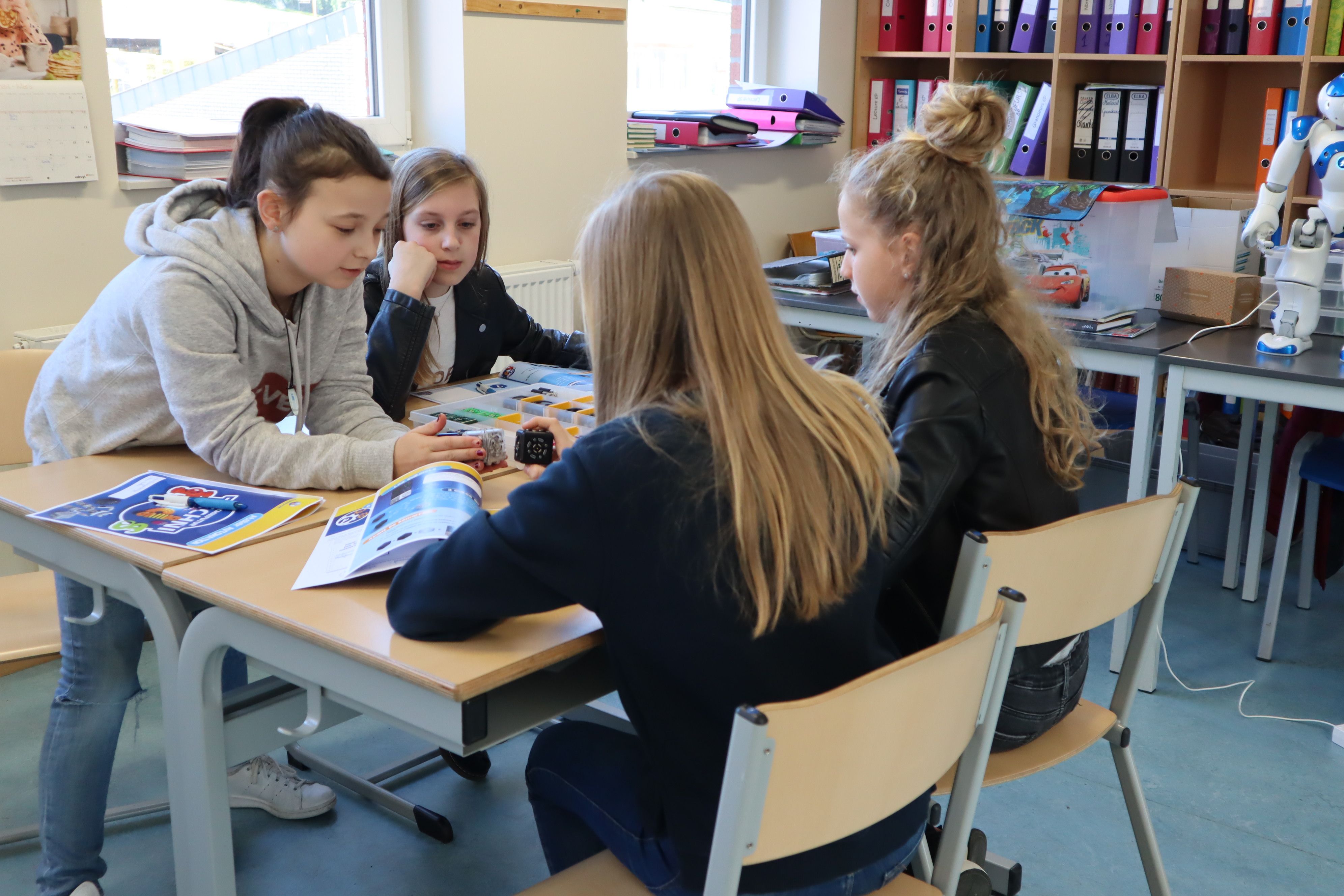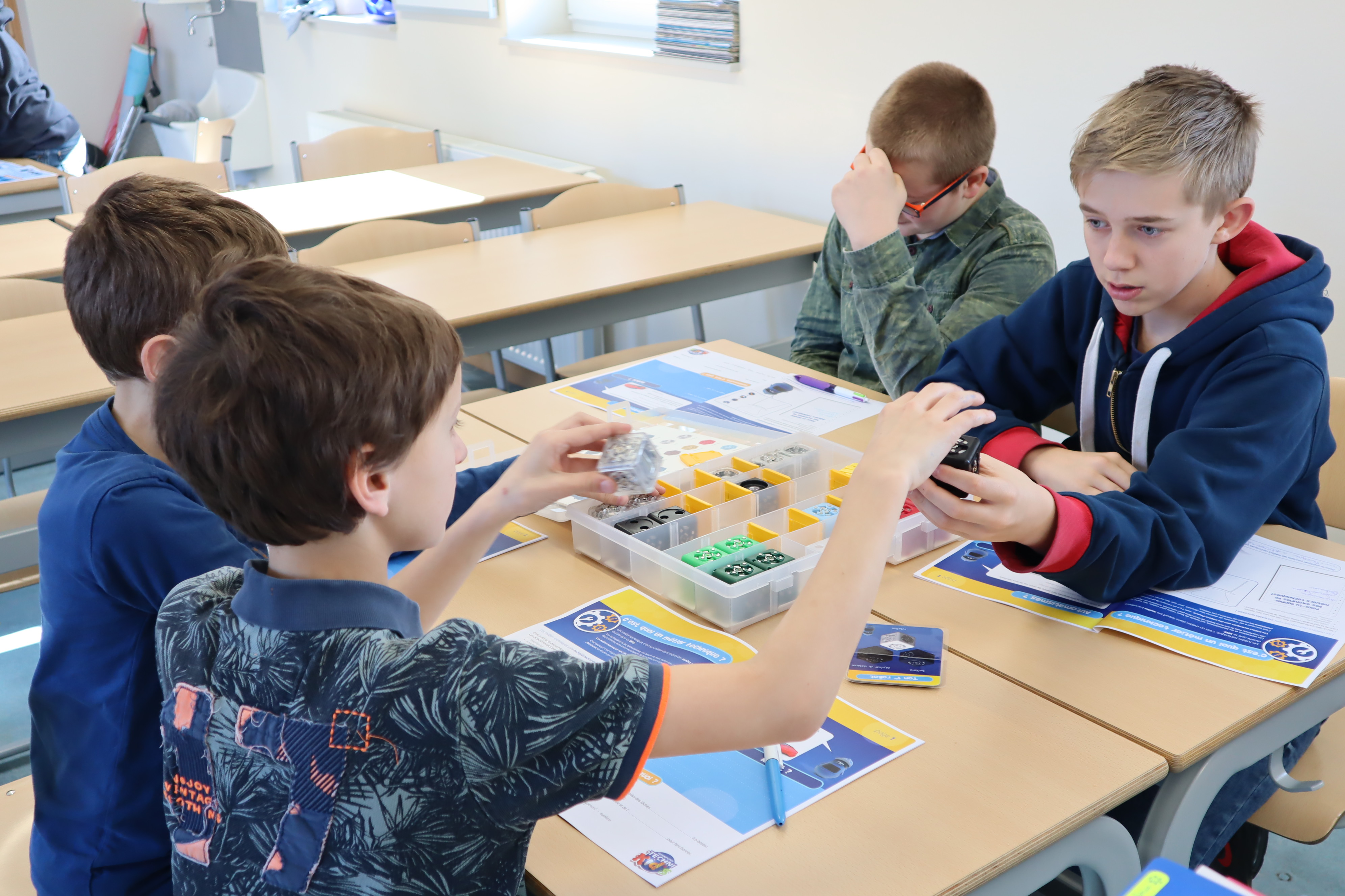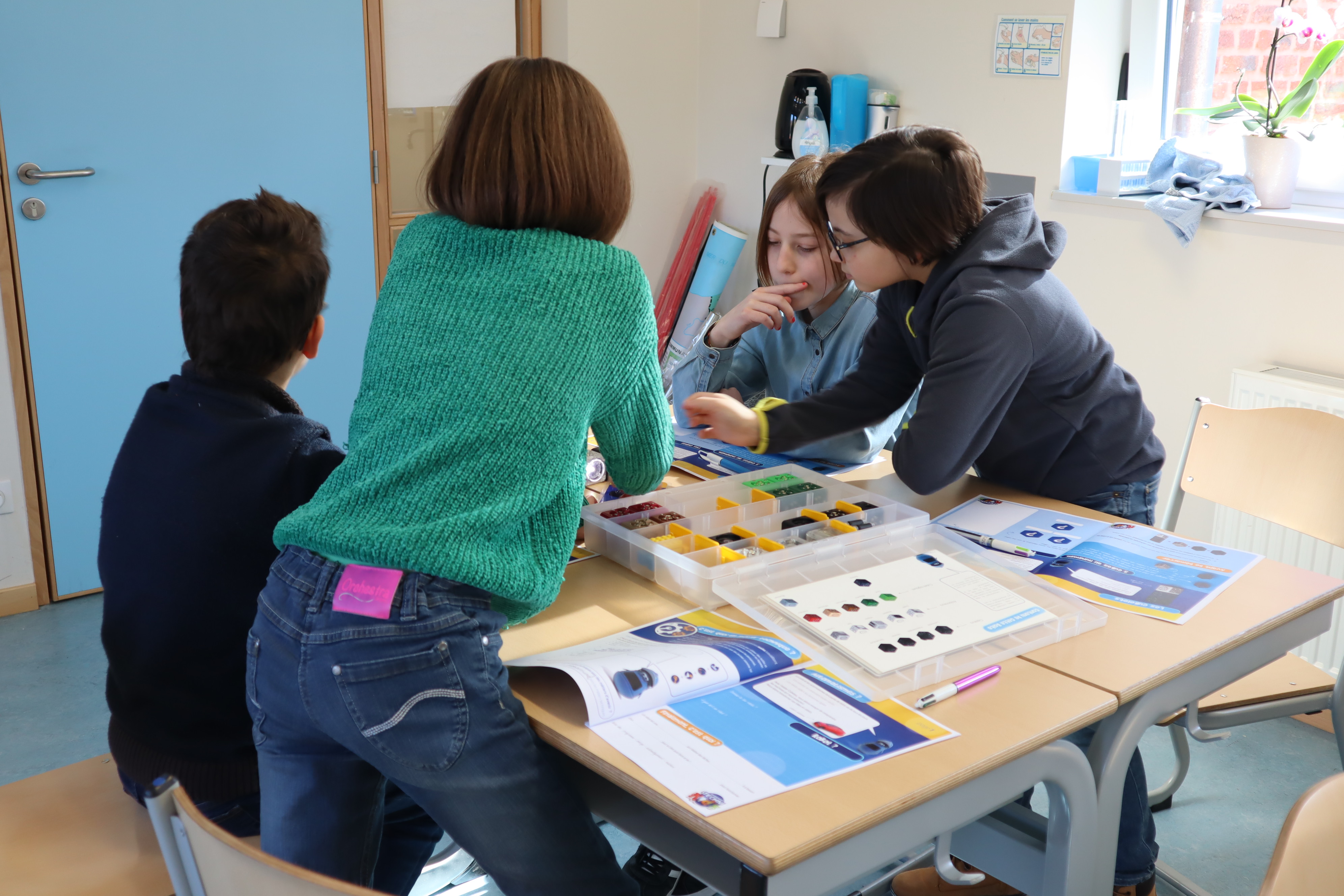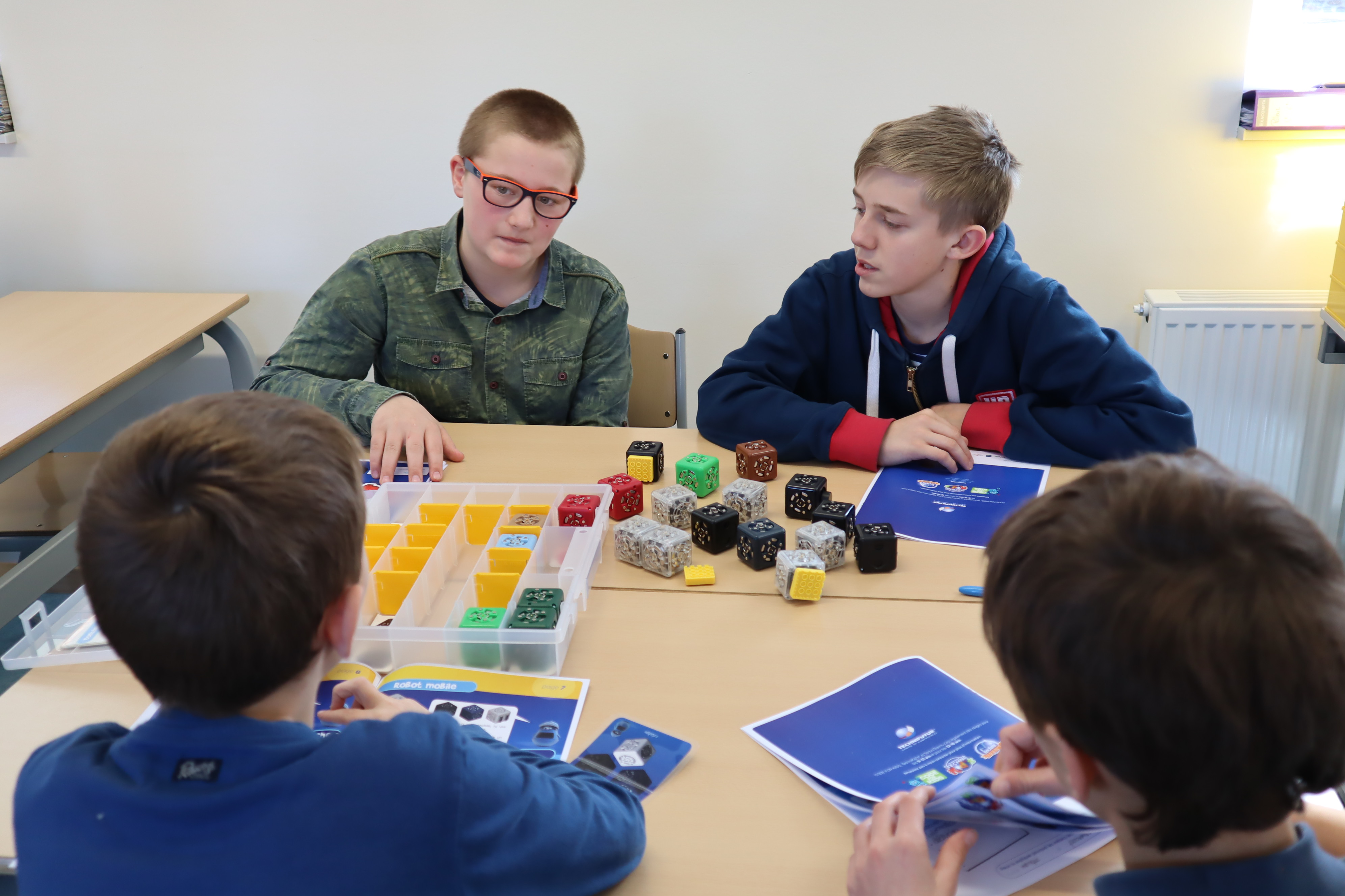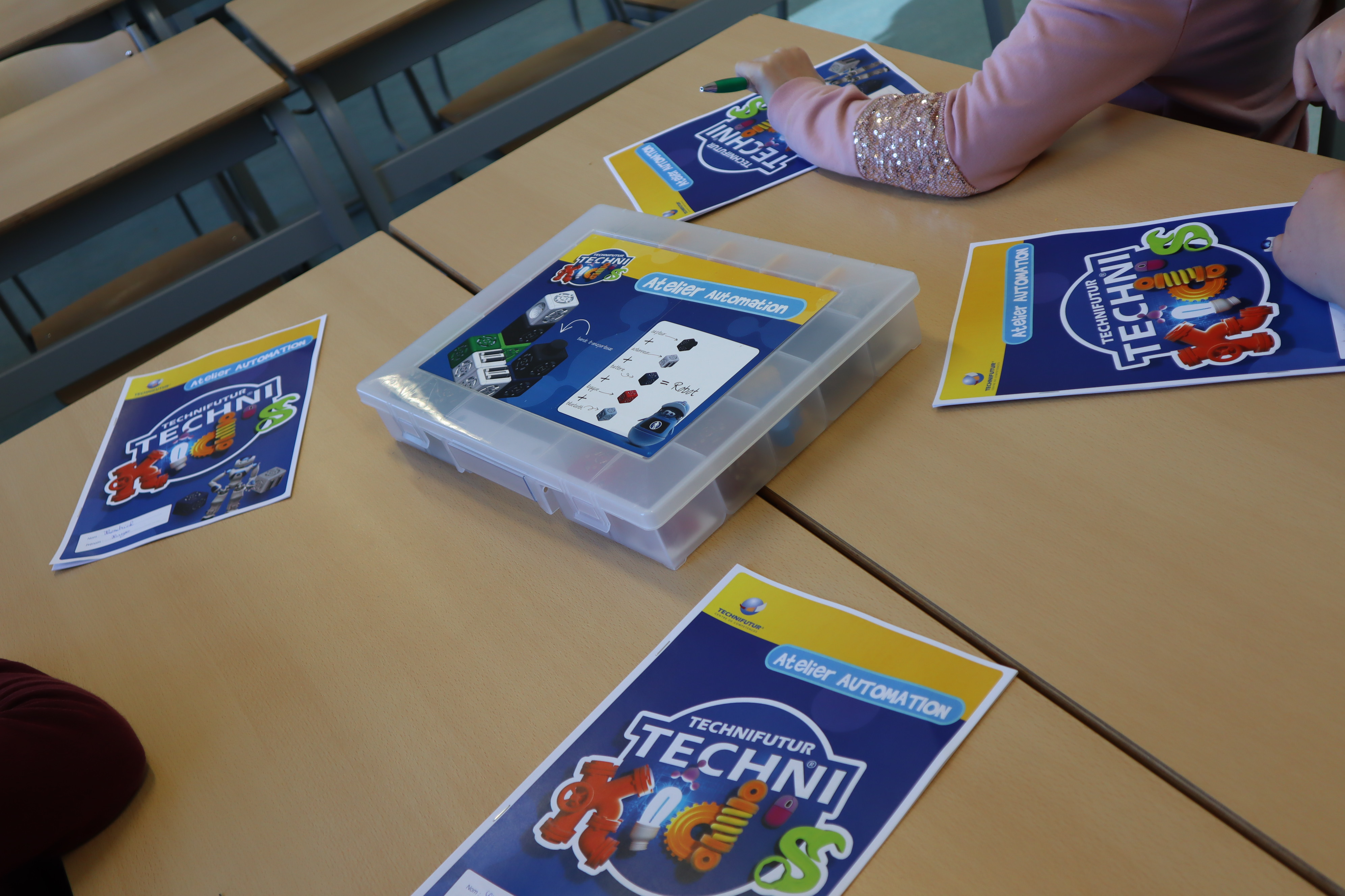 Ils ont pu manipuler, par groupe, des cubelets. Ce sont des cubes aimantés. Il en existe plusieurs sortes : une batterie, un capteur et un actionneur. Ils ont créé leur « premier robot » en assemblant 3 cubelets.