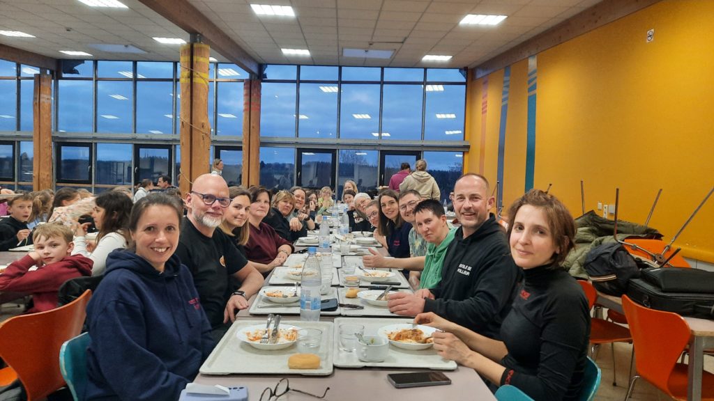 Le déjeuner nous permet de prendre des forces pour la dernière matinée de sport … Le programme est d’ailleurs un peu modifié puisque deux groupes feront finalement de l’accrobranche.