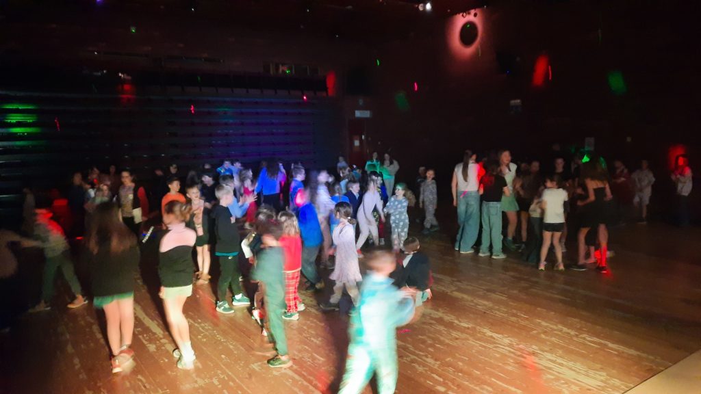 Il n’y a plus qu’à brancher un ordinateur et hop, les décibels inondent le dance floor ! De 19h30 à 21h00, c’est parti pour 90 minutes de délire. Ils chantent, ils crient, ils sautent, … bref ils s’amusent bien nos p’tits élèves. Soprano, Gims, David Guetta, Stromae, … Tous les artistes du moment ont droit au chapitre ! Voilà des moments riches que les enfants devraient conserver en mémoire pour un bon moment. Nous ne pouvons pas nous empêcher de penser à quelques-uns de nos petits camarades qui ne sont pas avec nous ce soir. Nous espérons sincèrement qu’ils seront de la partie l’année prochaine …