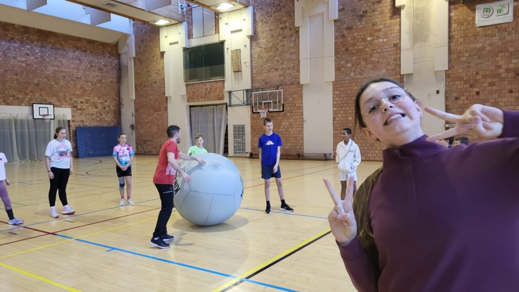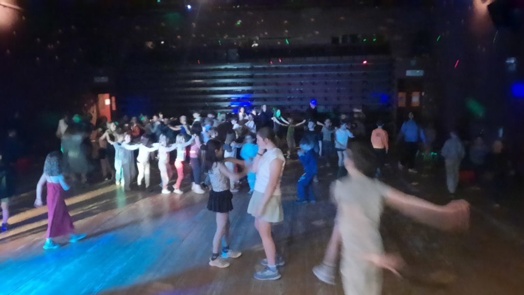 Un autre moment fort attendu durant les classes de sport, c’est … la boum ?! Pour ce soir, nous pouvons disposer d’une grande salle déjà toute équipée. Les élèves trépignent d’impatience …
