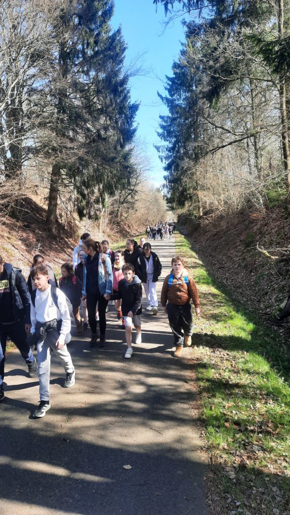 Forts d’une bonne énergie, les élèves de 3P-4P-5P-6P s’élancent pour le tour du lac. D’après nos informations, celui-ci possède une longueur de 10,7 kilomètres. Avec une telle météo, c’est un vrai plaisir de se balader. C’est parti ! Une joyeuse troupe est en route …