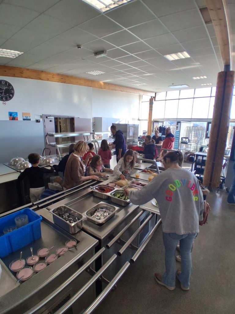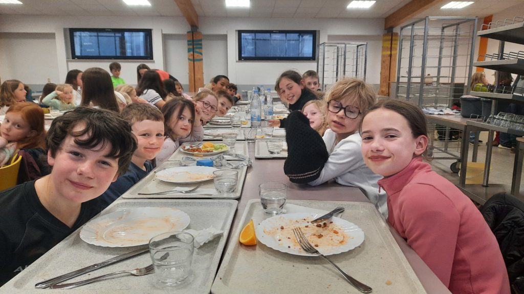 Le déjeuner nous réserve une petite pagaille … Une autre école vient d’arriver et nous sommes maintenant près de 200 dans le réfectoire. Nos mots ne peuvent traduire le bruit qu’il peut y avoir même si nous sommes contents du bon comportement de nos élèves.