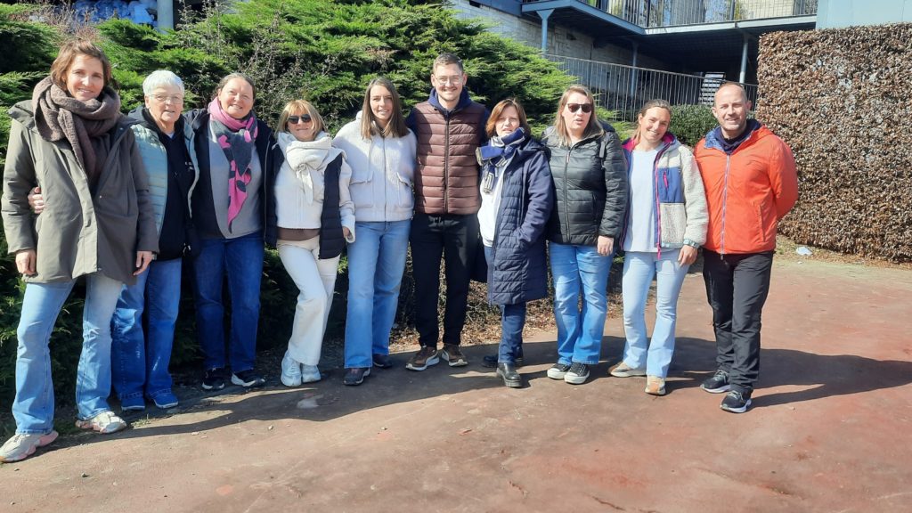 Cette fois-ci, les trajets se déroulent un peu différemment … Il y a des autobus d’un côté et les bagages qui se rassemblent de l’autre côté. La distance qui nous sépare du centre est relativement courte, c’est une des raisons pour lesquelles les trajets se déroulent de cette manière. Encore quelques petits détails à régler … un petit bisou … des signes de la main … des au revoir parfois un peu douloureux … Pas de tracas, tout ira bien ! Nous retrouvons une équipe d’accompagnants habitués (merci à Dom et Youp !) avec en plus madame Marine.