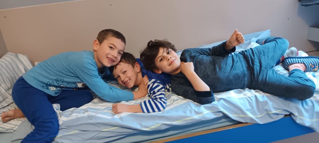 Les activités sportives des plus petits ne commencent qu’à 14h00. En attendant, ils se retrouvent pour des moments libres dans les chambres.